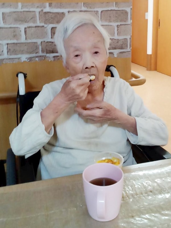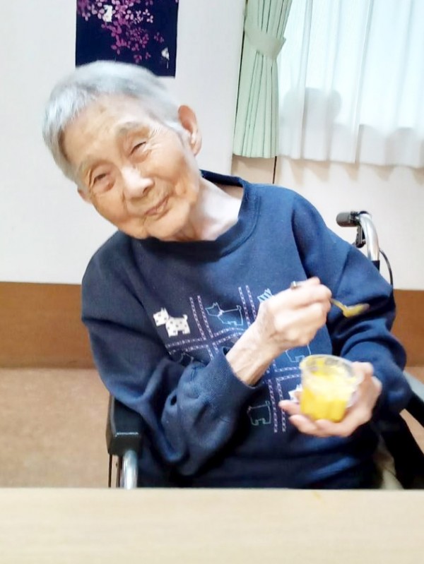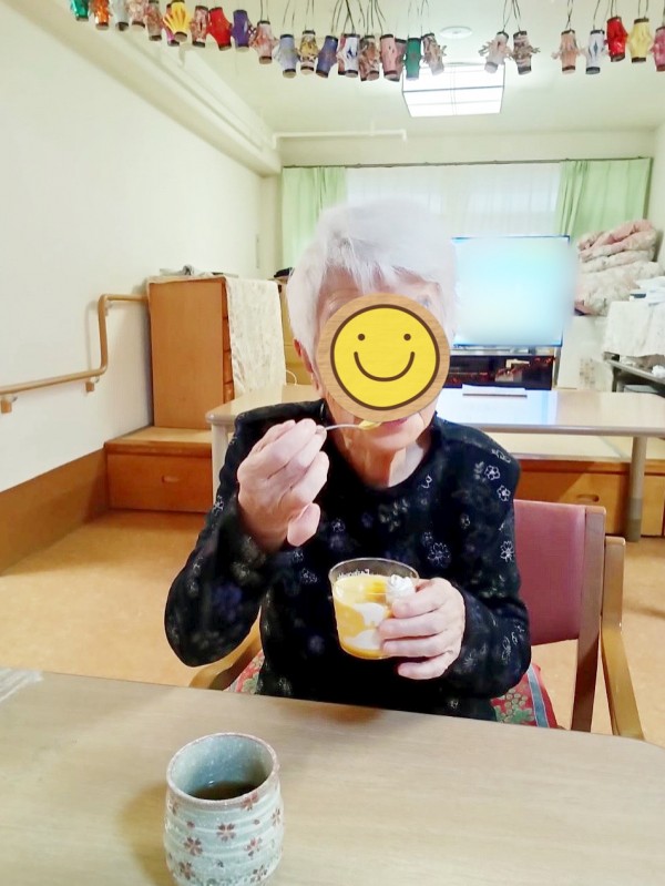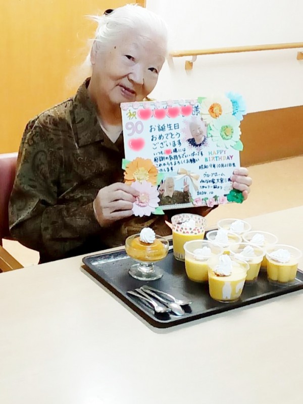 ハッピーバースデーの歌を全員でうたって、トロッと美味しいかぼちゃのプリンでⅠ様の90歳のお祝いをしました。