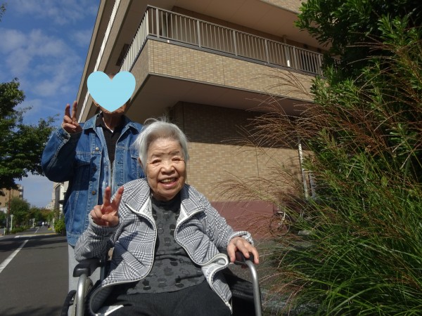 お顔をお見せ出来ず残念ですが O 様もずっと「外に行きて~な~」と仰っていたので