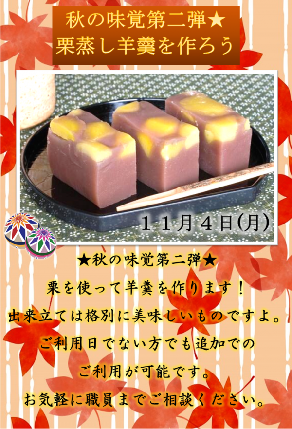 4日(月)は栗蒸し羊羹を作ろう