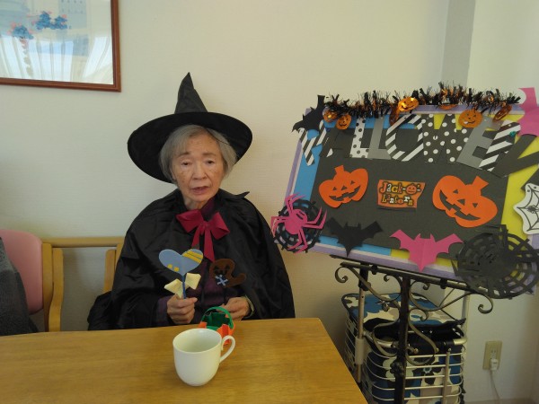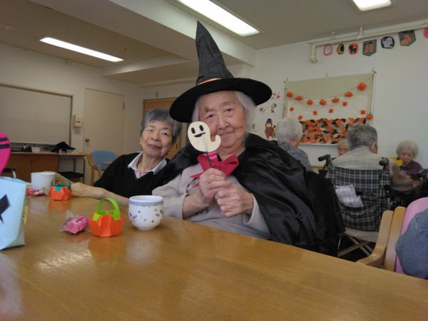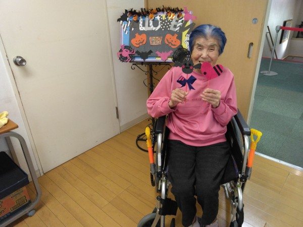 ご用意したお菓子などに満足していただけたご様子で「これは(カボチャの入れ物)持って帰ってもいいの?」「あのステッキ凄いわね!可愛いわ」「凄くたのしかった♪写真撮って家族にみせるの」など皆様とっても楽しまれたハロウィンレクリエーションでした♪