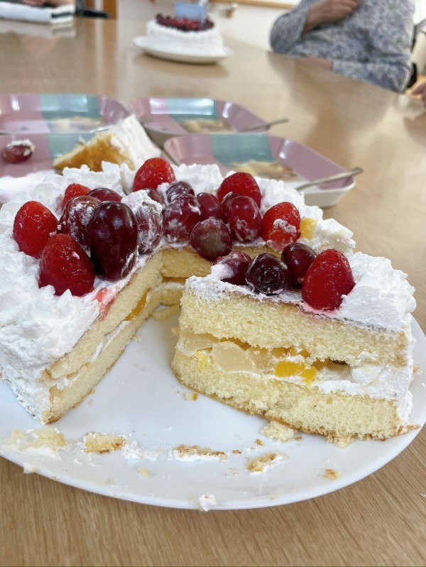 「うん。ケーキ!果物好き♥」との事でしたのでケーキ作りが得意なT職員にお願いしてみました♥