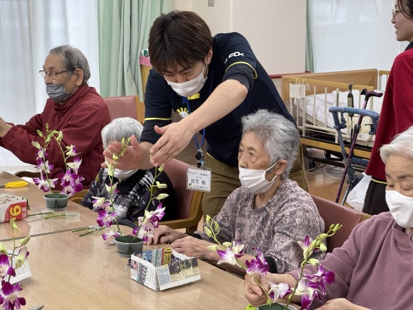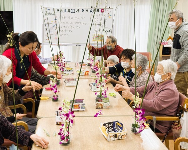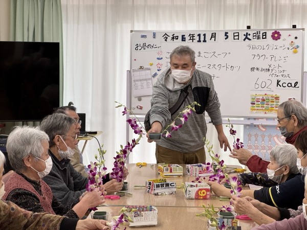本日ご紹介するのは、5日(火曜)に行われました「フラワーアレンジメント」と「機能訓練ダンシングパフォーマンス」となります♪