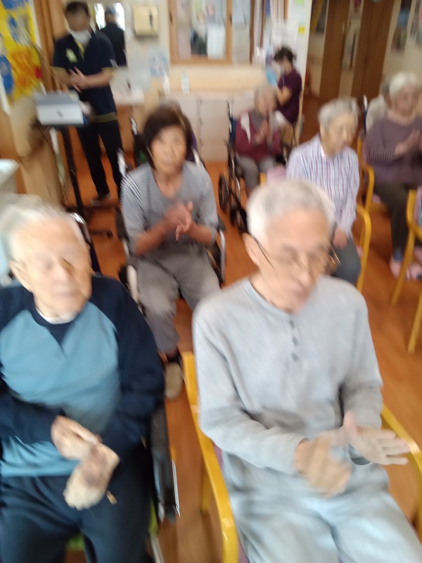 先生や、スタッフが協力して体操して、笑顔になっているのは微笑ましいですね(笑)