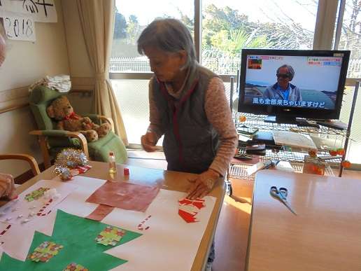 12月はクリスマスツリーの壁画を一緒に作りました。