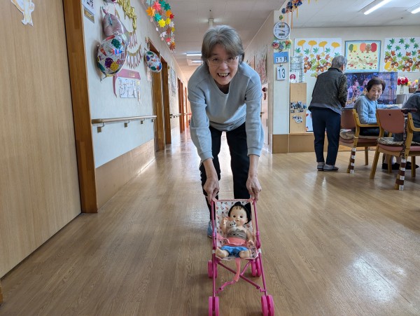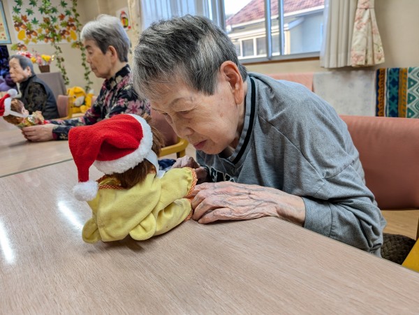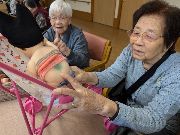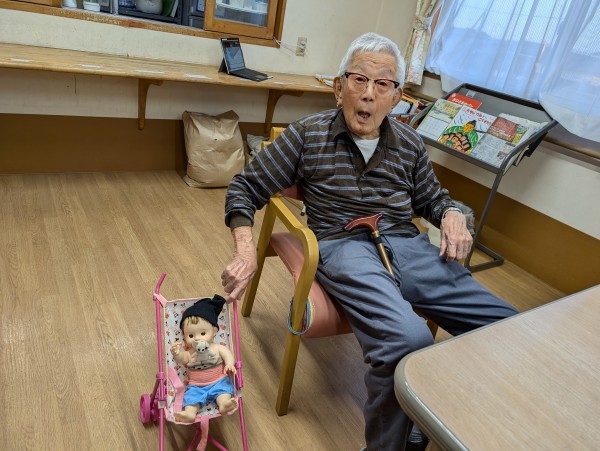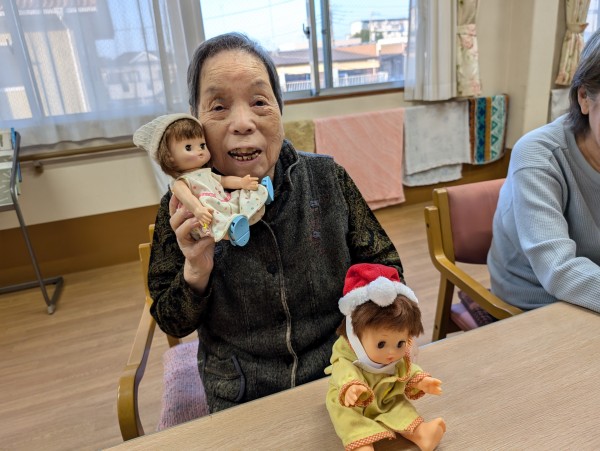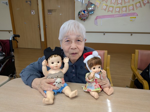 突然、現れたかわいいゲスト【お人形】にパッとご利用者様の表情が
