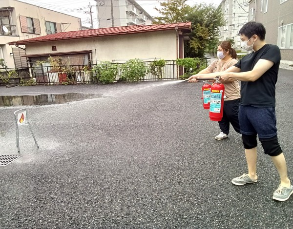 消火器を使用した消火作業