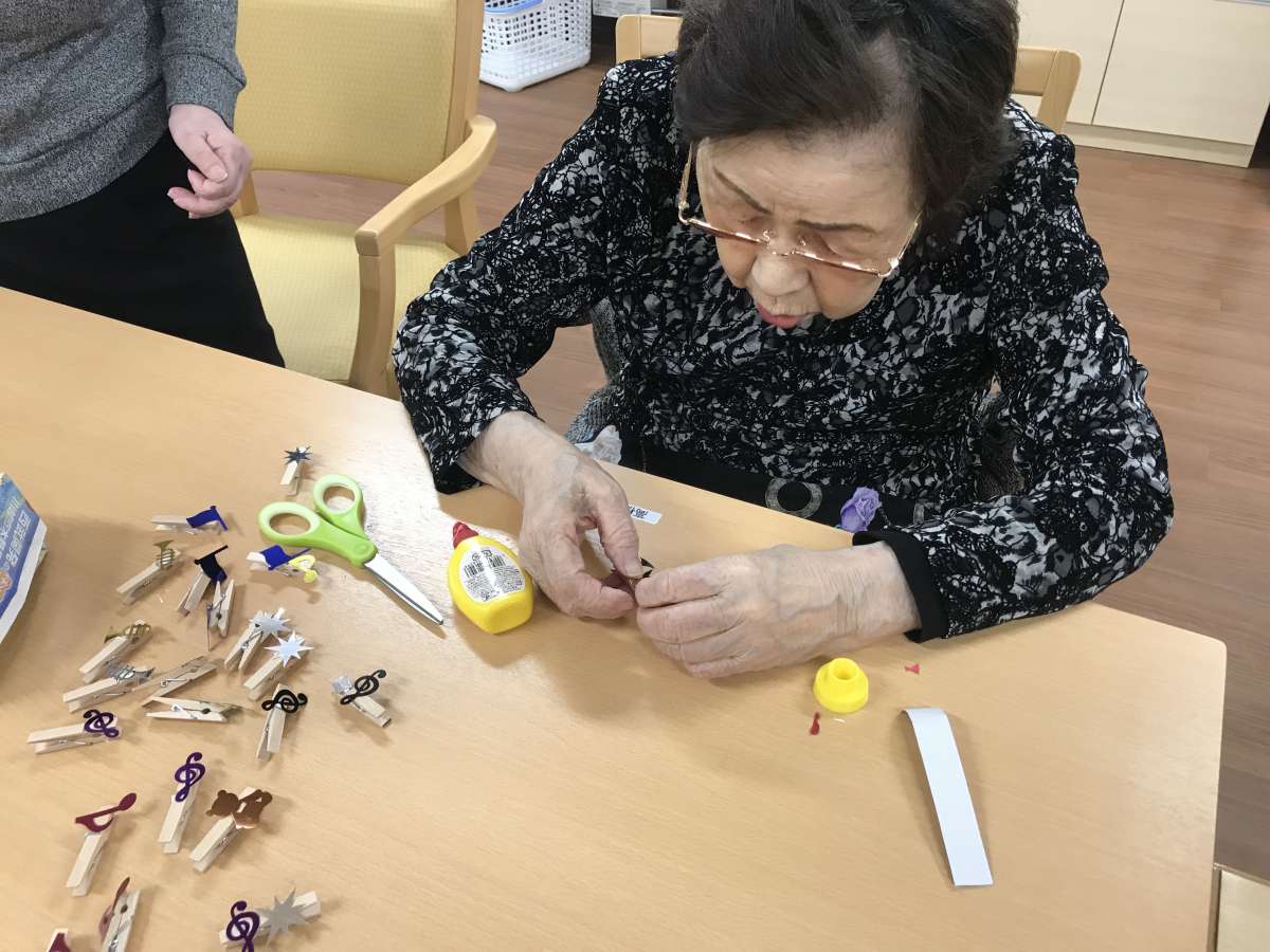 真剣な表情で、飾りを作成中。