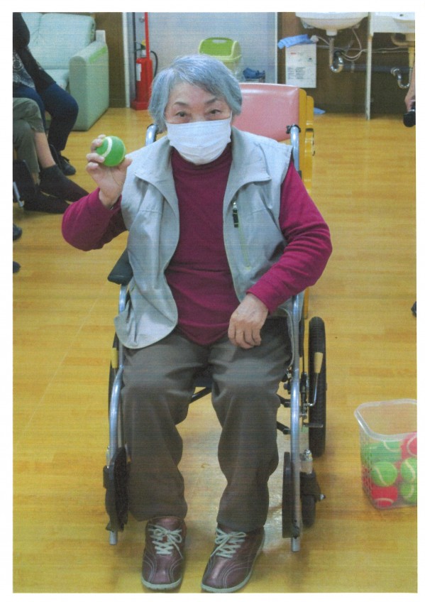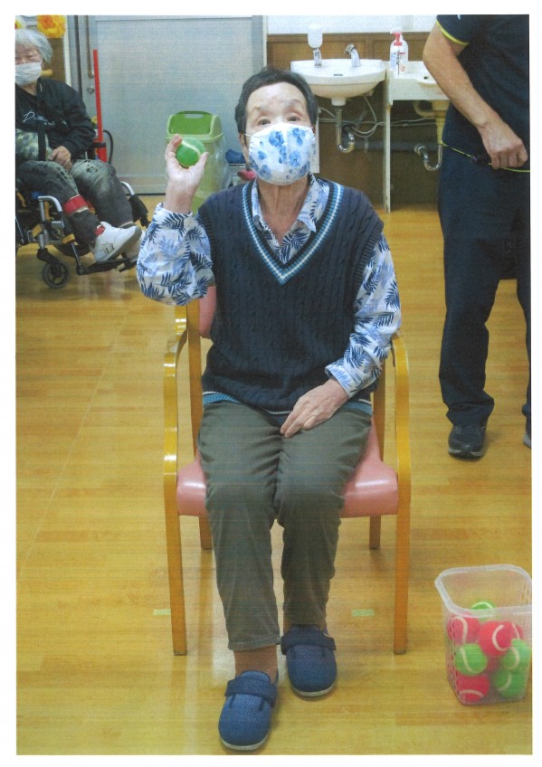 本日午後のレクリエーションは【的当てゲーム】です。1~9の数字か書いてある的めがけてボールを投げ、的に当てます。ボールはマジックテープで的に張り付くようになっており、的の数字の合計を競います。一番下の段がが7・8・9と高得点を狙えるのですがなかなか思うようには投げられないものですね。コントロールの難しい的当てゲーム。昨今の野球ブーム「大谷さんになったつもりで投げたよ」なんて声も聞かれました。皆様点数は様々ですが、とても楽しんでいらっしゃいました♪