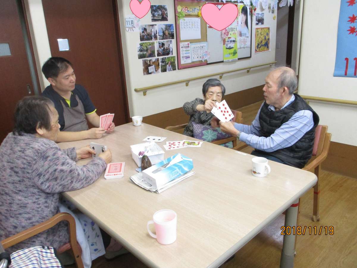 他ご利用者様と談笑されたりレクリエーションをされたりと、早くも楽しく過ごされています♪