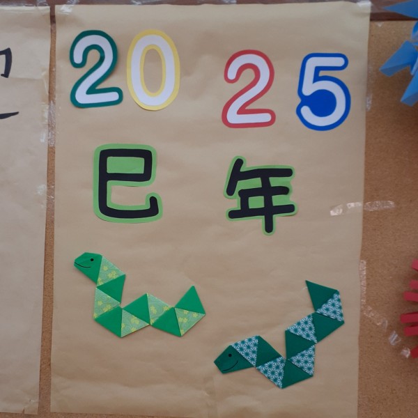 画用紙に一生懸命、考えながら貼ってました(*'ω'*)