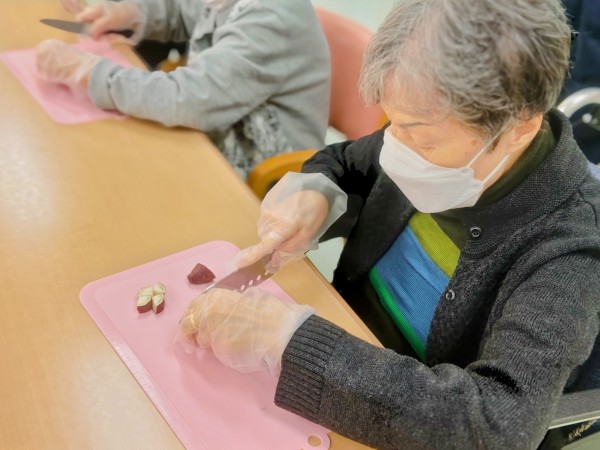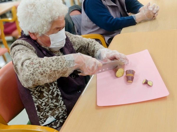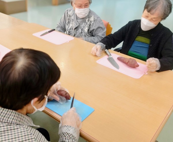お芋が炊けたら軽く混ぜて溶けた飴を絡めて盛り付けです!