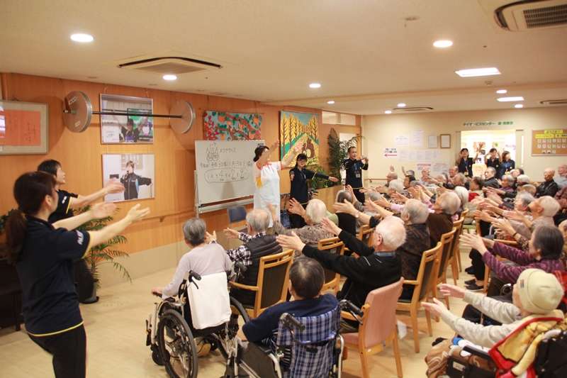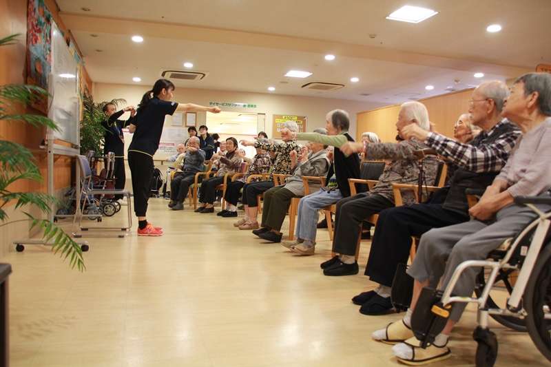 11月13日火曜日、毎月第二火曜日にノーアエクササイズ、脳(頭)と脚を鍛えて老化予防と進行を遅らせる効果が有り、認知症の予防また、転倒防止に役立つエクササイズです。すこや家西東京を始めグループホームみんなの家西東京、ショートステイみんなの家西東京、デイサービス遊西東京では、この1年11回のエクササイズを行ってきました。ご利用者の皆様方は、とても楽しみに体を動かしております。今回は、すこや家西東京の玄関ホールにて行い、面会に来られたご家族も一緒に参加されたり、職員も笑顔で楽しみながらの1時間でした。