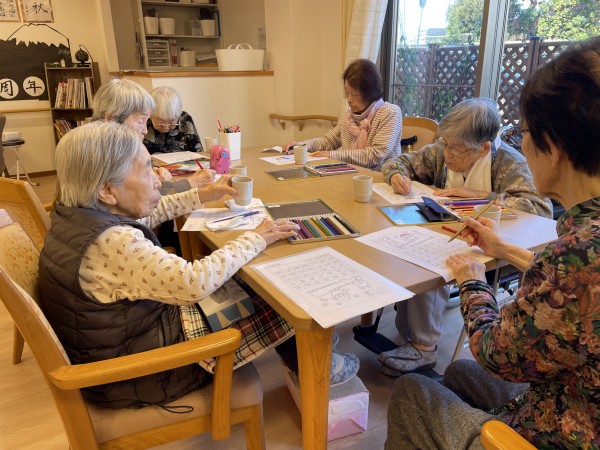 楽しい会話をしながら真剣にぬり絵にも取り組むところが皆様多才ですね(o^―^o)ニコ