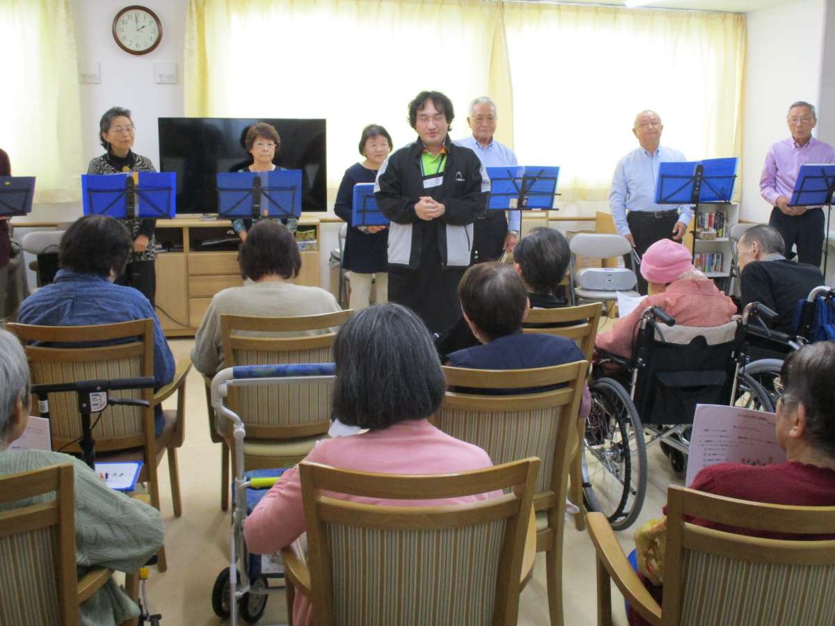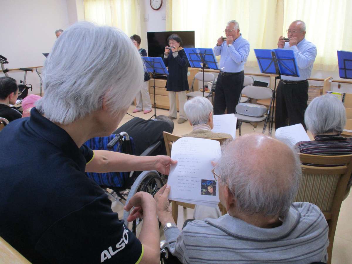 利用者の皆さんも「通りゃんせ」、「もみじ」、「野菊」などをハーモニカと一緒に唄われました。