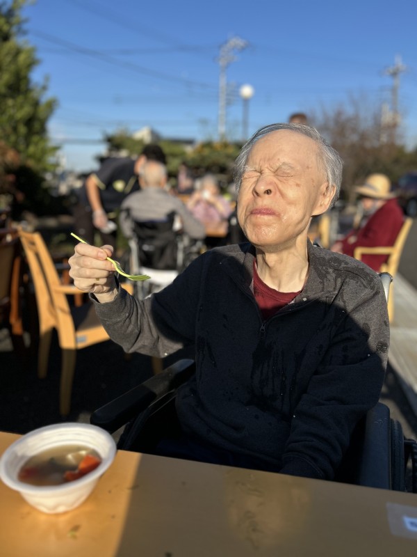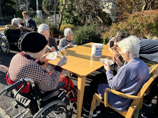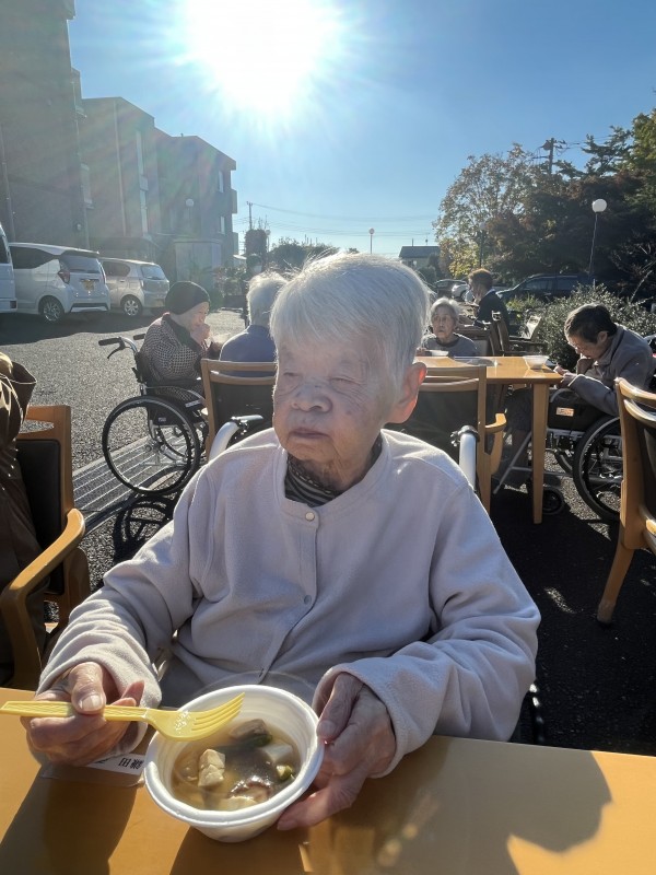 先週の22日(金)に施設の駐車場で【芋煮会】を行いました。