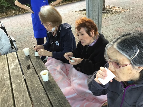 少し寒くなる前の事ですが、寒くなる前にお散歩に行きたいねという話になり、午前中に利用者様に作っていただいたおやつ持参でお散歩に行ってきました(*^^*)