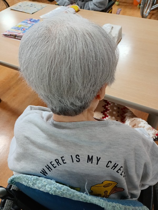 一番乗りで髪を切り終わったご利用者様が、「髪型どうかしら…?」と