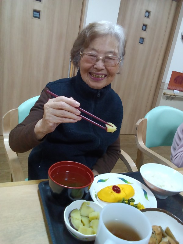 ふかし芋のおやつに続いて、本日は甘く煮て、夕食に召し上がっていただきました。
