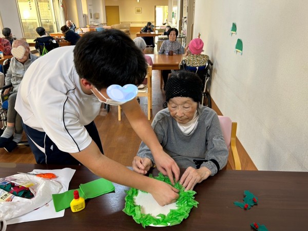 ご入居者様と一緒にクリスマスの工作レクリエーション