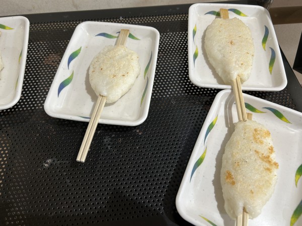 鉄板で一つ一つ表と裏を焼いていきました。お餅の香ばしい匂いがフロアー内を漂っておりました。