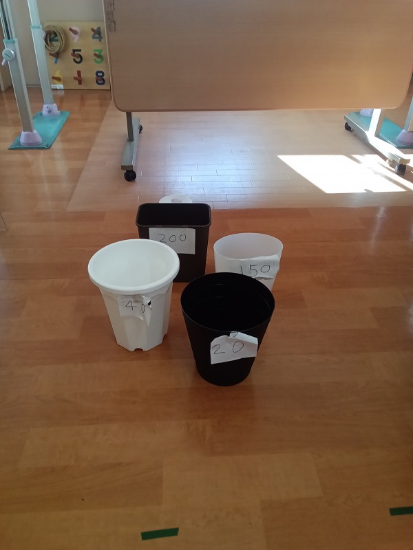 入れ物に得点があり、合計点で勝敗を決めます。