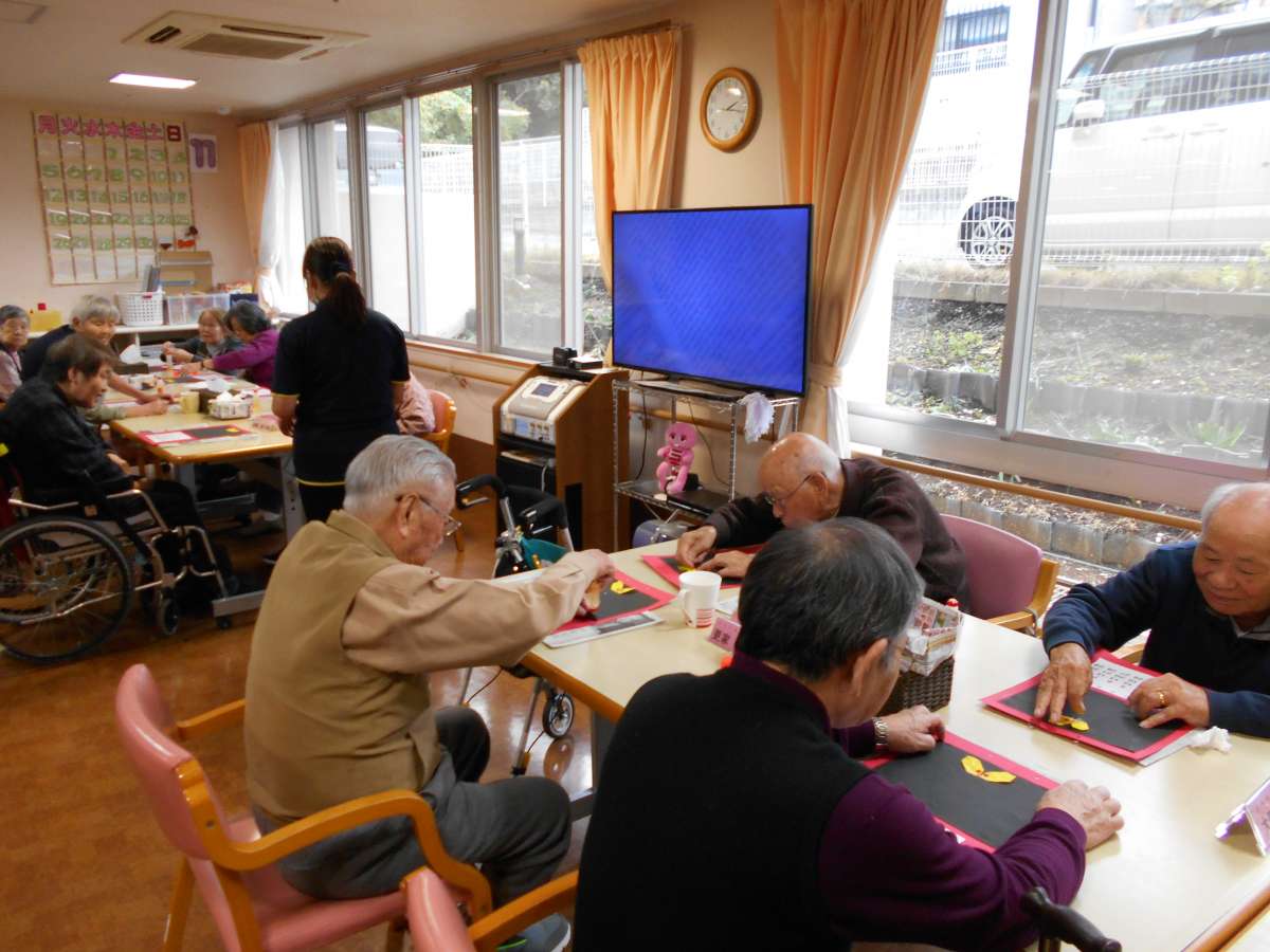 お花紙や折り紙で出来たクリスマスツリーやベルを