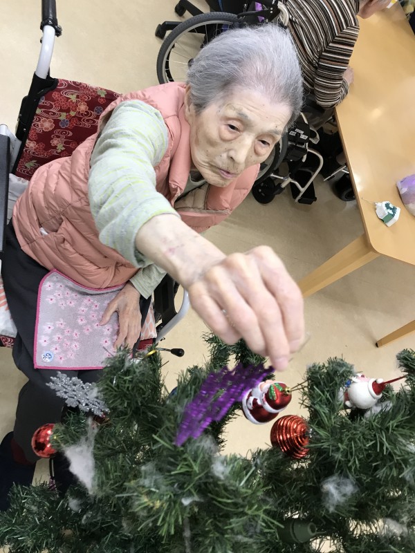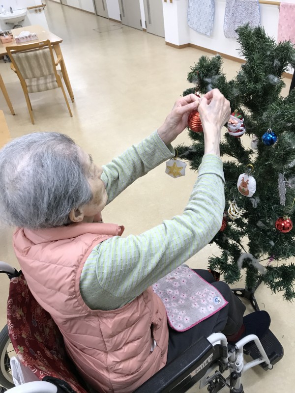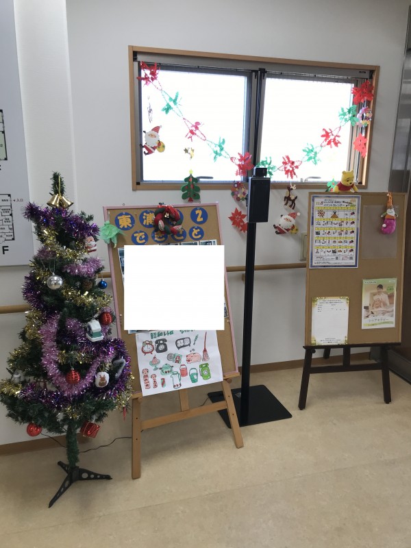 ご利用者様、職員が飾り付けたクリスマスの飾りつけが玄関に設置しております。