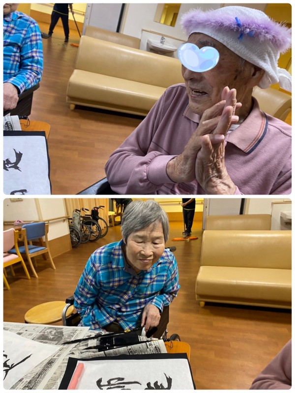 他のフロアでの書道レクリエーションは