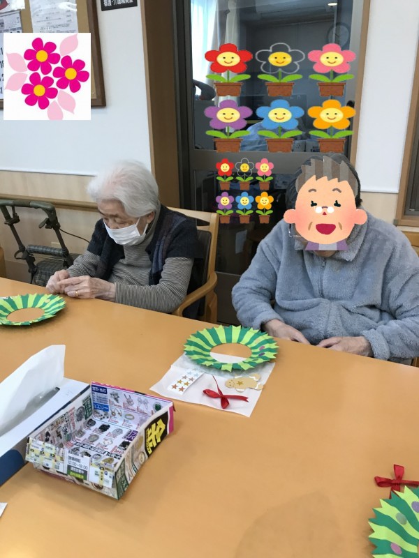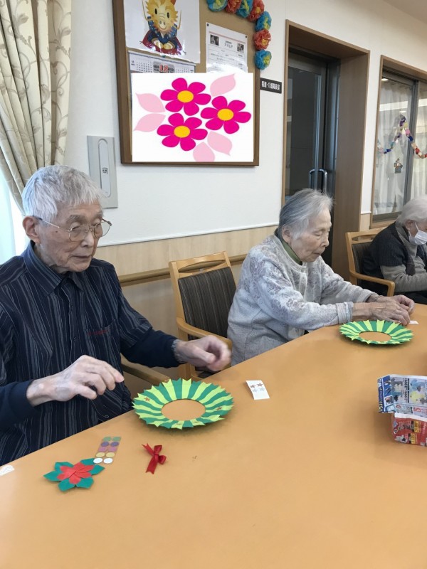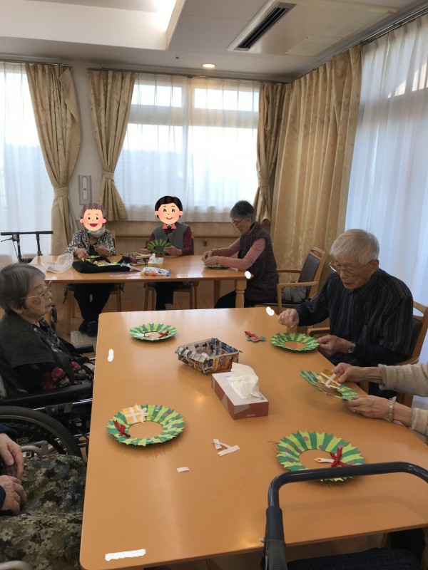 12月8日(日)の午後、3階フロアの皆様でクリスマスリースを作りました。