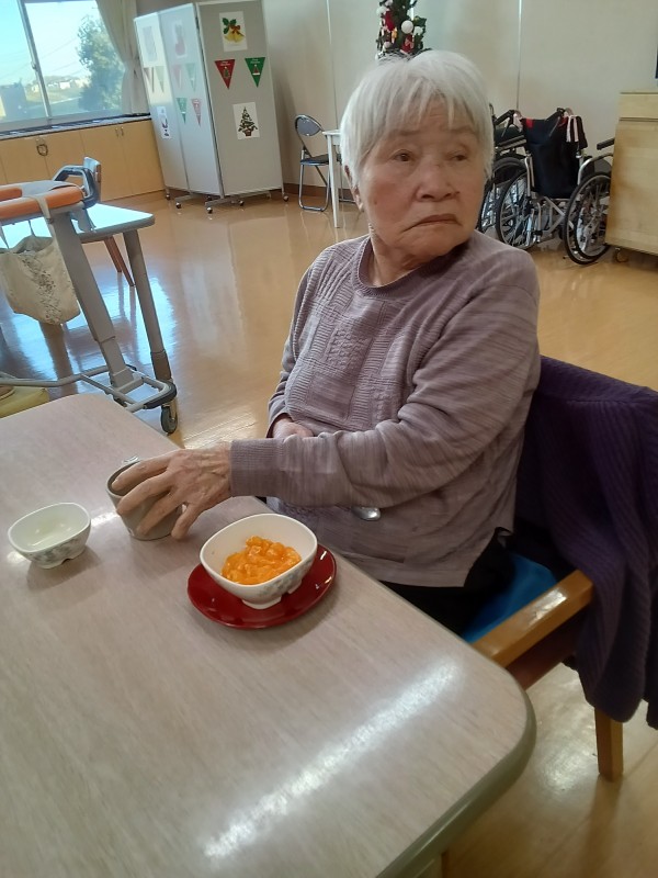お庭でとれたみかんもいただき皆様笑顔で召し上がっていらっしゃり