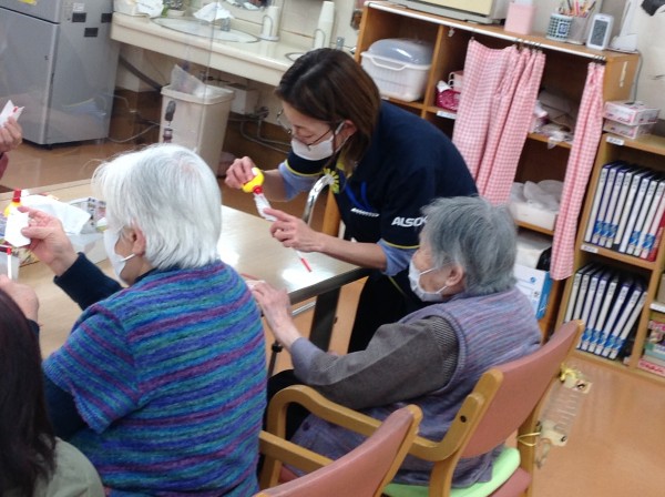 〇遊蓮田では来所した際、消毒・体温計測・うがいなどの対応を行っております。当日体調不良の方は無理せず必ずデイサービスにご一報お願いします。コロナウイルスが落ち着きつつありますが、拡散と飛沫を防ぐためご利用時は必ずマスク着用・持参にてお願いします