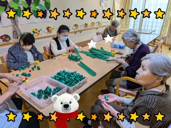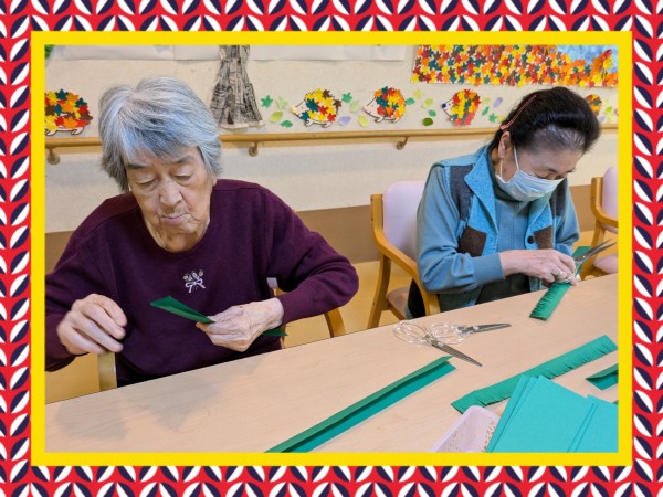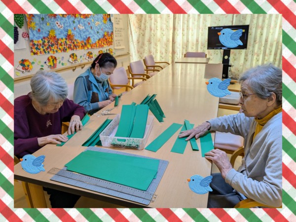 大量の色画用紙を半分に折って・・・切り込みを入れていく~