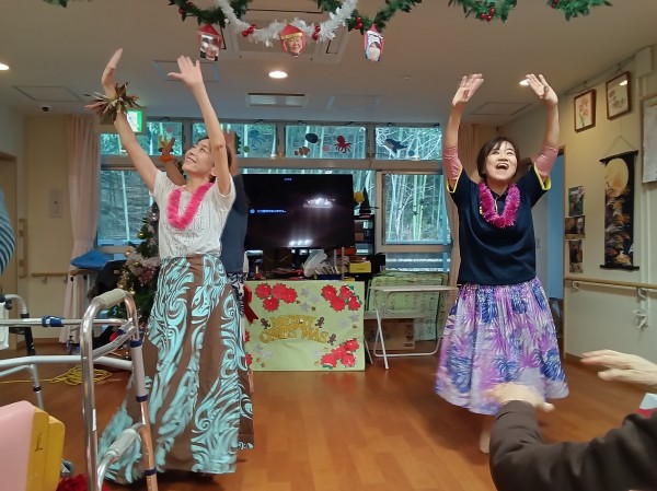 ご利用者の皆さんもレイをつけ毎日の練習の成果を発揮です!