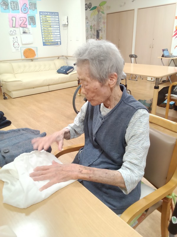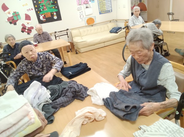 沢山の家事活動に参加して頂いております。今回は、洗濯物をたたんで頂きました。