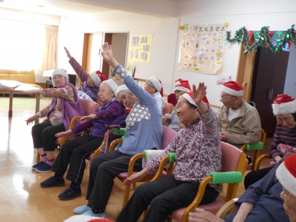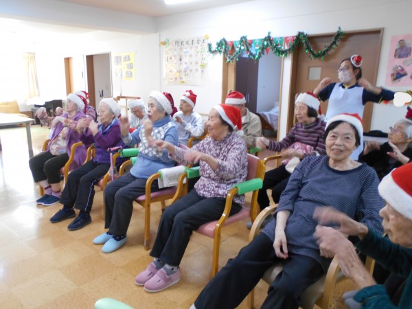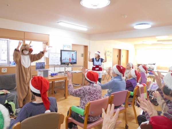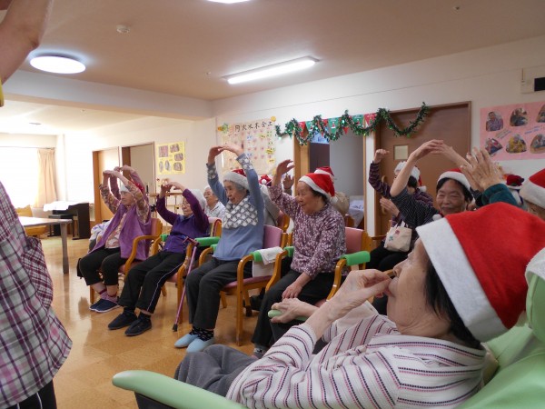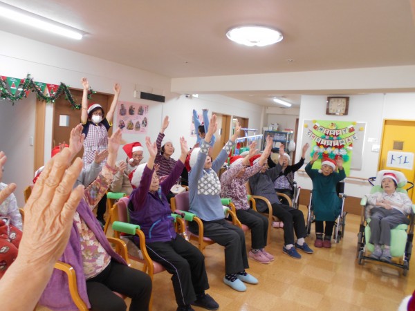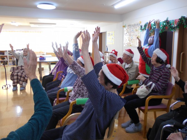 途中トナカイに扮したスタッフも登場し、皆さん笑顔を見せながら体操に参加されていました♪
