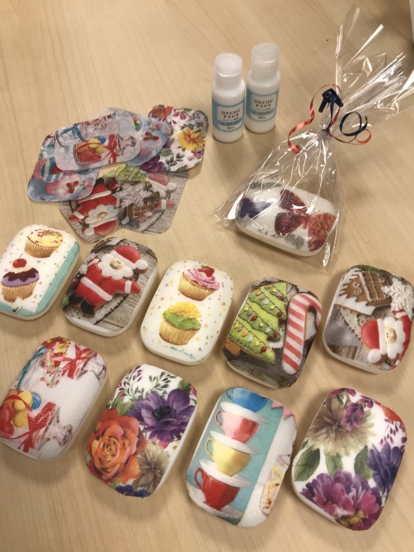 今年のスタッフサンタからのプレゼントは可愛くデコパージュした石鹸にしました(*^▽^*)