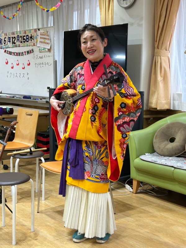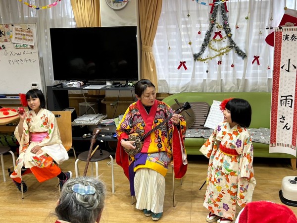 12月25日クリスマス当日は、昼食にセンター長特製照り焼きチキンをご用意し、午後は三味線演奏会となりました〜????♪