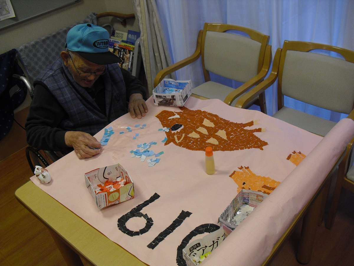 毎年作成している干支の貼り絵を毎日少しずつ地道に作成しています。