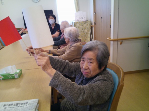 クリスマス会で披露する旗上げゲームの最終確認の練習のご様子です♪