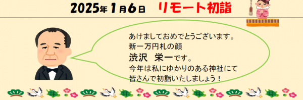 少し先の話になるのですが、2025年1月6日(月)14:00よりリモート初詣を行います。