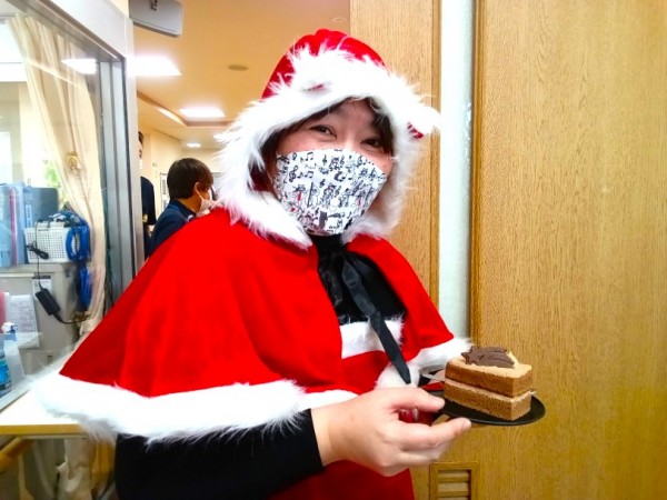 今回は、可愛いサンタさんがケーキを配ってくれました♪