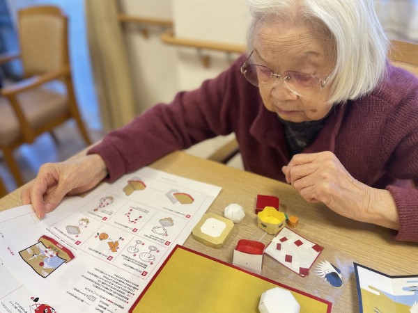 鏡もちと獅子舞のクラフトで細かい作業が多数ありました。