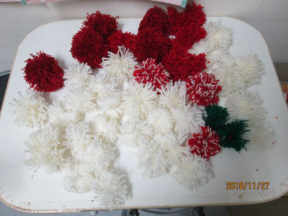 クリスマスカラーのポンポンを作りました。