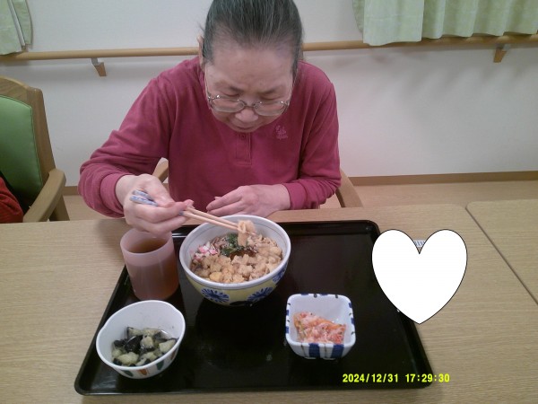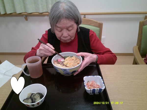12月31日ということで年越しそばを入居者様皆様で召し上がりました。