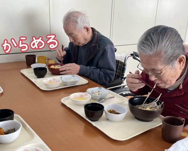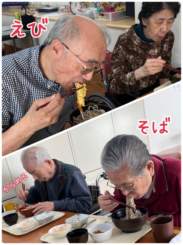 お父様は、蕎麦つゆに麺を念入りに絡めます