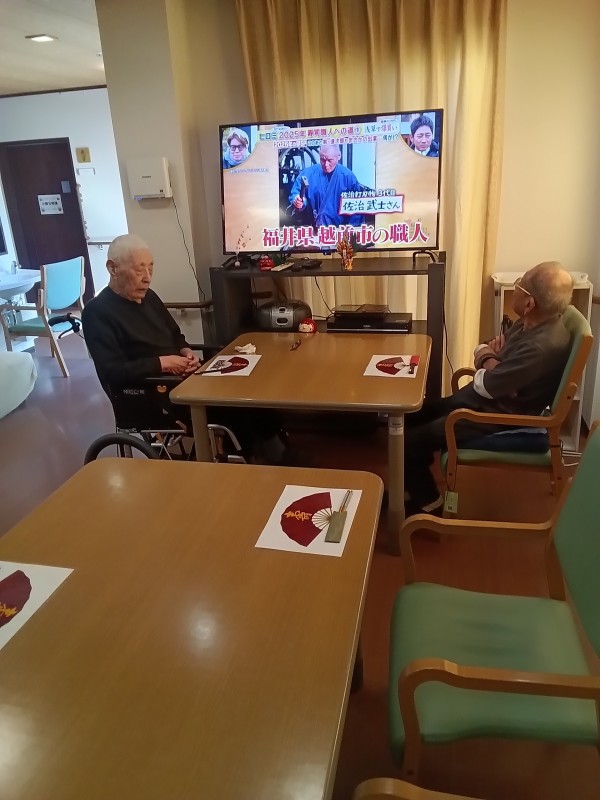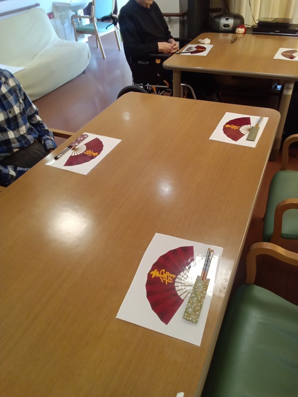 お正月風の台紙を用意させていただきましたが、入居者様に好評をいただきまして居室に持ち帰られる方もいらっしゃいました