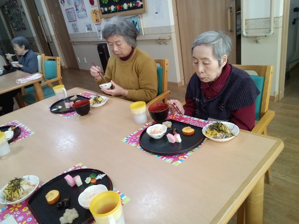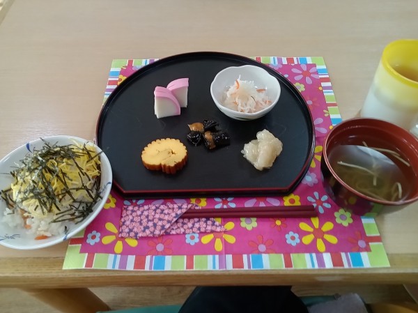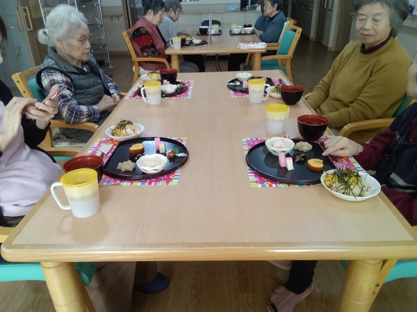 いつもと違う盛り付けでお正月気分を味わっていただきました。