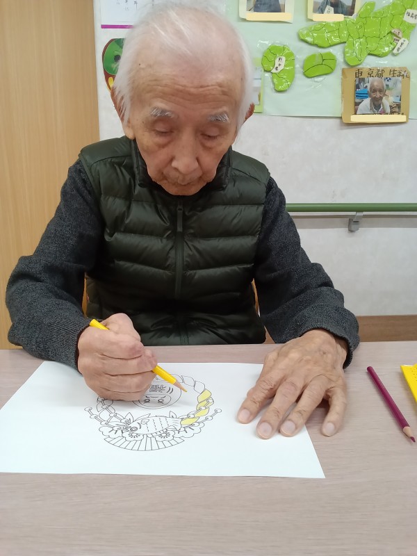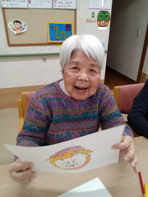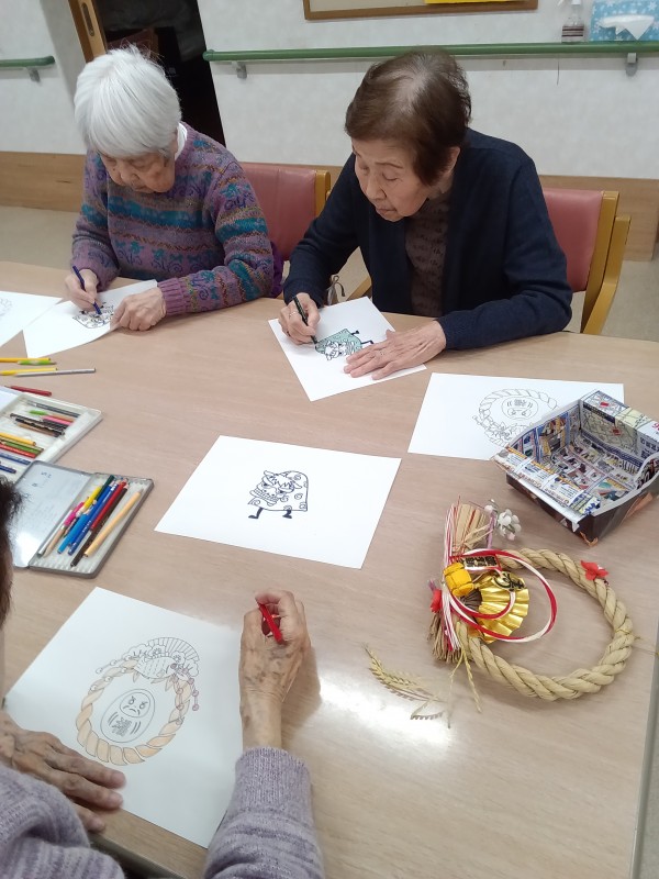 お正月にちなんだ塗り絵を行なったのですが、素敵な写真が撮れてしまったので、ぜひご紹介したいと思います(*^^)v