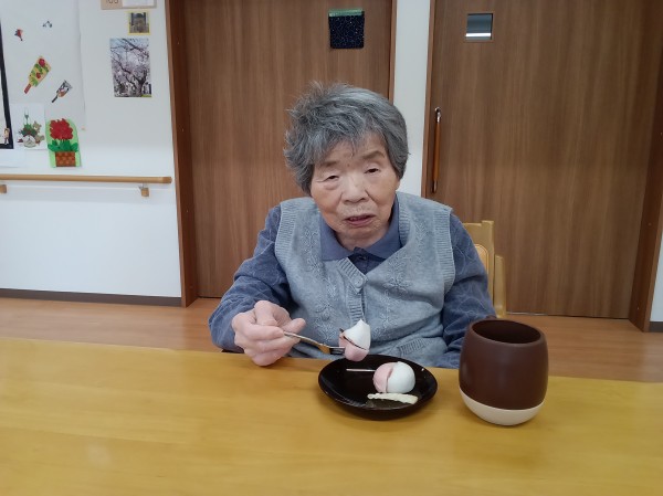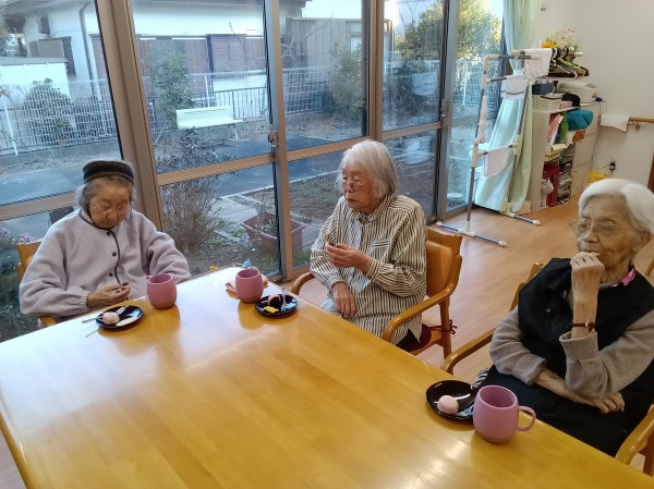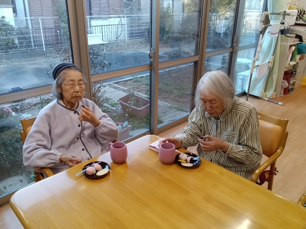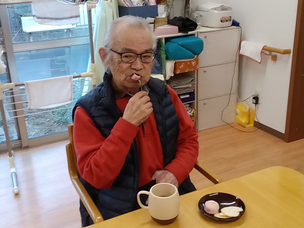 今日は1/1お正月・おやつに紅白まんじゅうを食べているご様子です( ^ω^)・・・ 美味しいおやつをいつもありがとう! と喜ばれておりました(*^_^*)