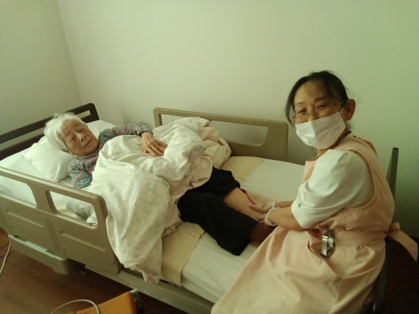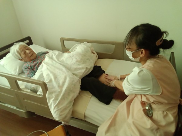 ご入居者様と歌を歌いながら施術をしてくださっています。